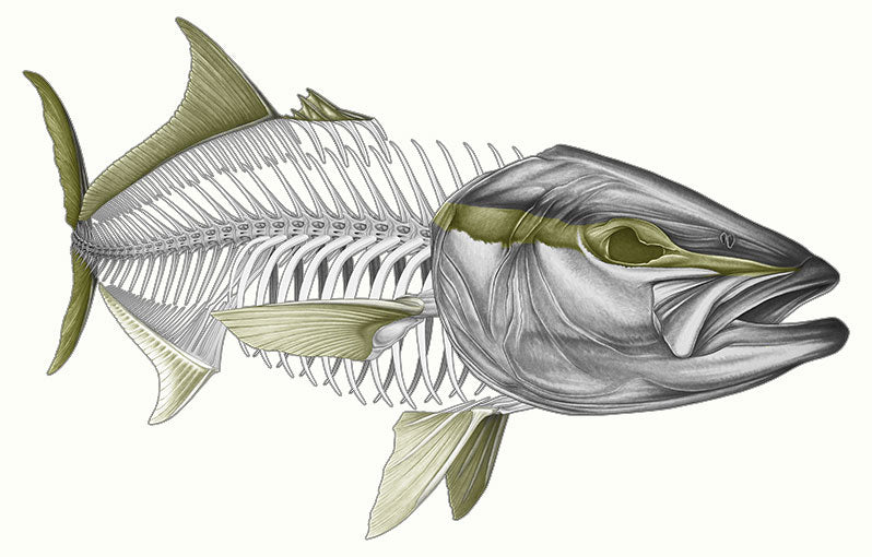 There is no background, the decals are contour cut to the shape of the Kingfish. They do have grey outline so the bones are not too fine.